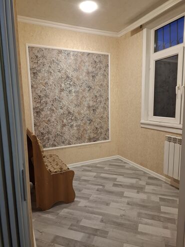 - Geniş otaq: dekorativ çərçivəli divar, kristal çilçıraq, laminat döşəmə, pəncərə və radiatorla təchiz olunub. Otaqda böyük güzgülü 3 qapılı şkaf mövcuddur.