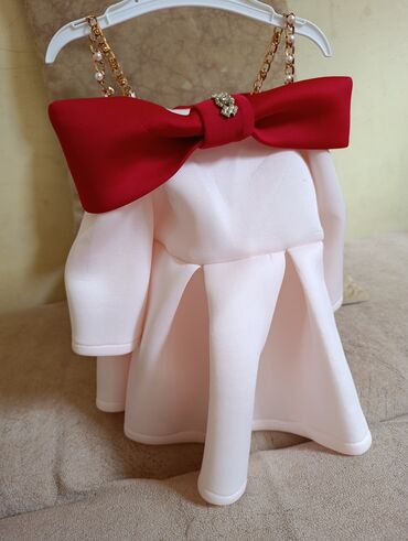 Ağ rəngində qız üçün zərif ziyafət/ mərasim donu. - Aksesuarlar: eyni materialdan qırmızı məxmər əlcək cütü və saç üçün qırmızı bant. Tədbirlər, məktəb tədbirləri, toy-nişan, bayramlar və fotos...