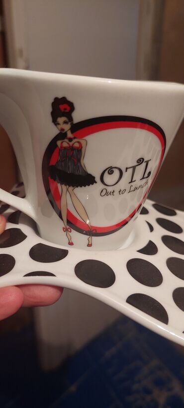 Üzərində Qız Qalası ornamenti olan fincan və nəlbəki dəsti. Yenidir, şəkildə qutusu da göstərilib, fincan və nəlbəkidə defekt yoxdur, tək defekt qutusunun ağzı bağlanmır. Qiymət 13 manat.