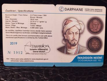 Kolleksiya üçün köhnə metal sikkə - Ön tərəfdə iki başlı qartal təsviri və aşağı hissədə emblem/nişan elementləri görünür - Dairəvi forma, tünd mis/bürünc rəngə yaxın ton - Kənarları hamar, səthin...