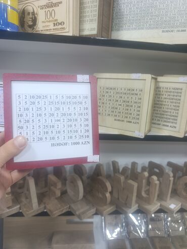 Divara quraşdırılmışMəhsul: “Hədəf: 1000 AZN” qəpik/kağız pul yığma cədvəli – ağac çərçivəli dekorativ tablo