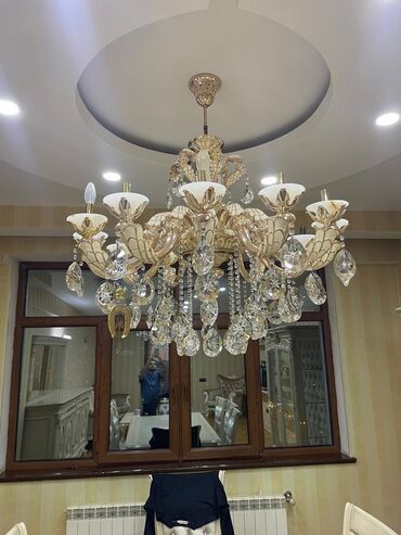 20 ilin lüstrasıdır karobkada idi. Temiz bronzadan xrustal daşlarla 12 şamdanlı qeyri adi ğözel görüşlü gür işiklı teze lüstra. Cox bahalı lüstradır. Şeklini cekmek ucun asılıb. Bele bronzadan lüst...