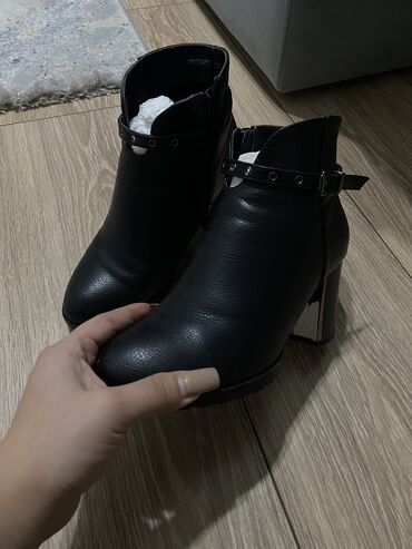 - Qadın botları, qara rəng. - Model 1: Stud və pərçim detallı, yan hissədə fermuarlı, yumşaq teksturalı material. Ölçü: 38. Ayaqda estetik görünüş verir. Qiymət: 60 manat. Mətndə qeyd: 2 dəfə geyin...