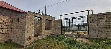 Torpaq sahəsi və yarımçıq tikili - Geniş hasarlanmış ərazi: daşdan hörülmüş perimetr divarları, giriş qapısı üçün yer ayrılıb. - İçəridə hazır bünövrə xətti və sütunlar; əsas tikili üçün konturlar...