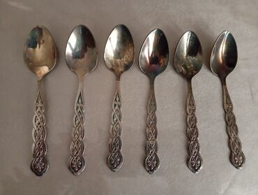 6 ədəd qaşıq dəsti - Material: metaldan hazırlanmış, qızılı rəng örtüklü. - Dizayn: sap hissəsində relyefli gül ornamentləri və klassik barokko üslubunda naxışlar. Qaşıq başı yumru-oval formadadır...