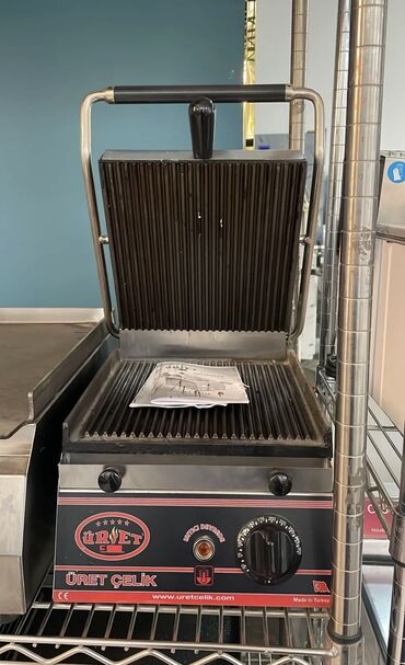 Elektrik kontakt qril/toster aparatı - Material: paslanmayan polad gövdə, metal qapaq və yan tutacaqlar - İkiqat kontakt səthi: üst qapaq və alt isti lövhə sandviç, tost, panini, dönər çörəyi və s...