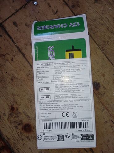 - Dəst: Ştepli şəbəkə kabeli (EU fiş), qırmızı/qara klemmlər.