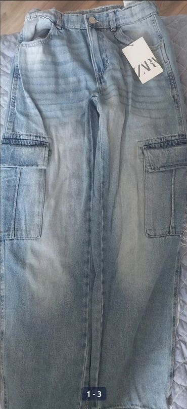 Zara markasına məxsus tünd göy rəngli cins şalvar. Klassik beş cib dizaynına malikdir. Gündəlik geyim üçün rahat və praktik seçimdir.