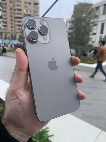 Heç bir cızığı,sınığı yoxdur.Təmirdə olmuyub,Yenidən zərrə seçilmir.Səliqəli istifadə olunub Batareya faizi 87 Apple iPhone 15 Pro Max– Titan örtüklü premium smartfon