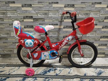16 liq velosiped seliqeli veziyyetde.Cox az islenib.Demek olarki,teze kimi qalib.Sekilde gorunduyu kimidir,aydin detalli sekilde cekilib. Sebeti,yan tekerleri,el zengi,el tormozu. 4 yaşdan basla...