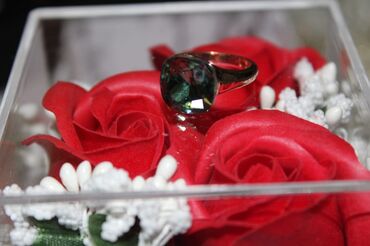 Gümüş rəngli qadın üzüyü - Dizayn: dairəvi başlıq, mərkəzdə şüşə/kristal daş, ətrafında xırda parıltılı daşlarla halo bəzək. Mərkəzdə qızılı tonlu halqa detalı ilə iki rəngin (gümüş və qızılı) har...
