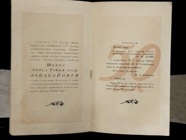 Pulsuz çatdırılma*1957* çi il. "" Professor Şamil Əbdül Rəhim oğlu Əzizbəyovun 50 illik yubileyinə həsr olunmuş iclasın proqramı. ( Əla vəziyyətdədir.).