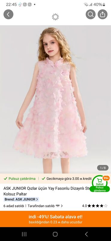 TƏZƏ. qizimin dogum gunu geyimini Turkiyeden 90 manata almisam. Ad gunune basqa geyim geyindirdik deye sadece cekilisde 10 deqliq geyinib. Evde bosuna qalmasin deye 50 manata vererem . Tem tezedir...