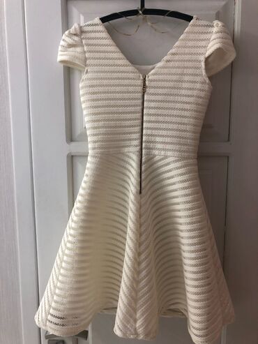 Razmeri 38, 1 dəfə geyinilib cırıqı söküyü lekesi yoxdur yenidir. Paltarın uzunluğu ölçülüb. Zolaqları tünd göy rəngdədir.