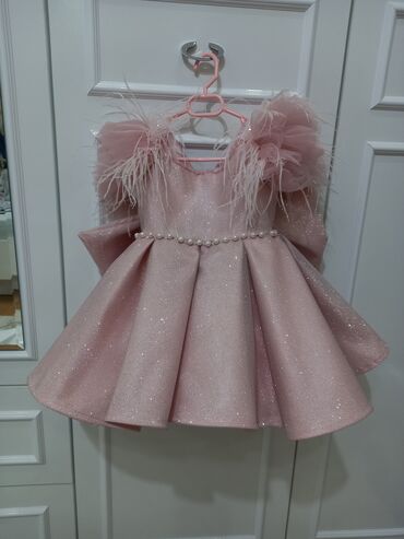 Uşaq üçün ziyafət/libas – zərif tüllü don - Rəng: açıq pudra-çəhrayı - Model: ətəyi çoxqatlı tül, yuxarı hissə incə parıltılı; yuxarıdan aşağıya qədər büzgülü qatlar - Bəzək: bel hissəsində həcmli...