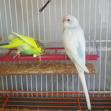 Dalğalı tutuquşular cütü - Növ: Budgerigar (dalğalı tutuquşu) - Rənglər: biri mavi-ağ zolaqlı, digəri tam ağ (albinoya yaxın) Quşlar yumurta verən quşlardır bir biriləri ilə çox yaxşı yola gedurl...