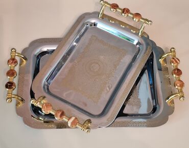 Paslanmayan polad2 ədəd-25 azn.Paslanmayan poladdan keyfiyyətli 2-li podnos dəsti təzədir istifadə olunmayıb.