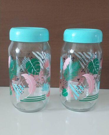 Yeni2 ədəd-8 azn.Türkiyə"Paşabahçe"çox keyfiyyətli şüşədənərzaq saxlama dəsti təzədir istifadə olunmayıb.Hər birinin ölçüsü-1litrdir.Üzəri maşın boyası ilə rəngləndiyi üçün rəngləri getmir,solmur həmişə parlaq qalır.