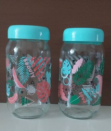 2 ədəd-8 azn.Türkiyə"Paşabahçe"çox keyfiyyətli şüşədənərzaq saxlama dəsti təzədir istifadə olunmayıb.Hər birinin ölçüsü-1litrdir.Üzəri maşın boyası ilə rəngləndiyi üçün rəngləri getmir,solmur həmişə parlaq qalır.