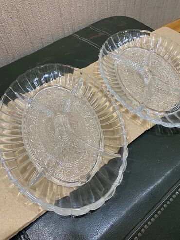 Şüşə qapaqlı şirniyyat qabları – 2 ədəd set - Material: qalın, şəffaf şüşə - Dizayn: vertikal kəsikli/reliefli korpus və konus formalı, tutacaqlı qapaq; işığı gözəl əks etdirən klassik üslub - For...
