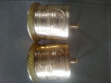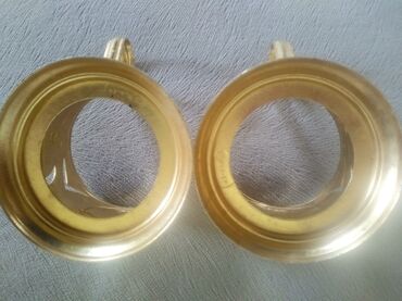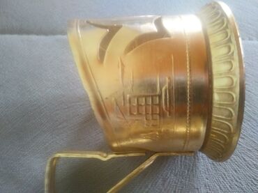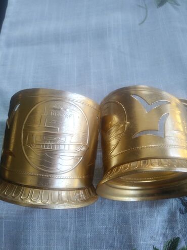 Stəkan altlıqları sovetdən qalan satılır. Yaxşı vəziyyətdədirlər. Hündürlüyü qulpu ilə birlikdə 7 santimetr. Materialı melxior, hər bir stəkan altlığının üzərində şəkildə göründüyü kimi təzə stəkan...