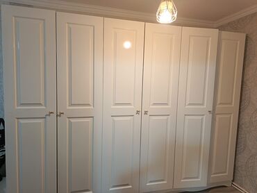 Müasir dizaynlı yataq otağı mebel dəsti Tərkib: - Geniş çarpayı: yumşaq panel başlıq, ağ-beton teksturalı və ağ korpus, taxta dekor elementləri. - 3 qapılı qarderob: mərkəzdə tam boy güzgü panellə...