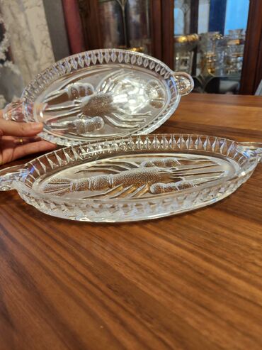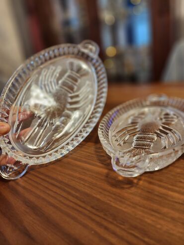 Temiz Rusiya istehsali xrustal qablar. Onlar masanıza zərif bir görünüş qatmaq üçün idealdır, həm də meyvə, şirniyyat və ya digər qəlyanaltılar üçün istifadə edilə bilər. Böyük qab-1eded 40azn Kiçi...