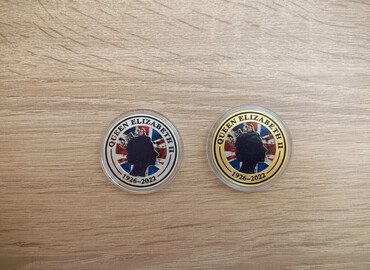 ƏlaBakıxanov/razində. 2 ədədi 11 manat.üzərində ii-ci elizabet portretin möhürü həkk olunmuş, kolleksiya toplamaq üçün yadigar sikkəsi 1926-2022 illər yaşayış dovrü. 1 əd. Qıymeti 6 manat edir. Qızılı və gümüşü rəng, 40 mm eni, 3 mm qalını, 30 gr çəkisi. Səliqəli, qabın içindədi. Yaxın ərazilərində çatdırılma var. Başqa elanlar da var girib profilə baxa bilersiniz. əlaqə nömrə profilimin baş səhifəsindədir