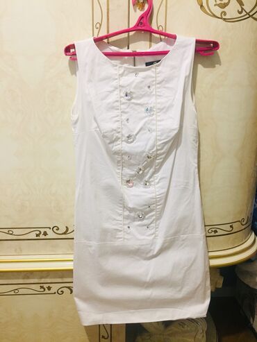 Donu tikdirmiwem 138 azn e, 30 azn satiram. 1 defe toya geyinilib. 36 bedendir. Ag rengdedir, iç bildirmir. Uzerinde gupurden islemesi var. Sag terefden gizli zamokladir, qarsindan duyme ilede acilir.