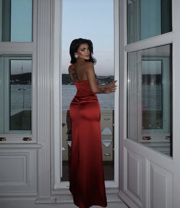 Qırmızı gecə/libas - Rəng: dərin qırmızı (şərab tonu) - Model: Uzun