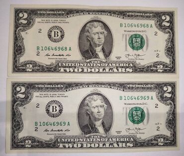 Məhsul: 2 ədəd ABŞ 2 dollar banknotu (ardıcıl seriya nömrələri)