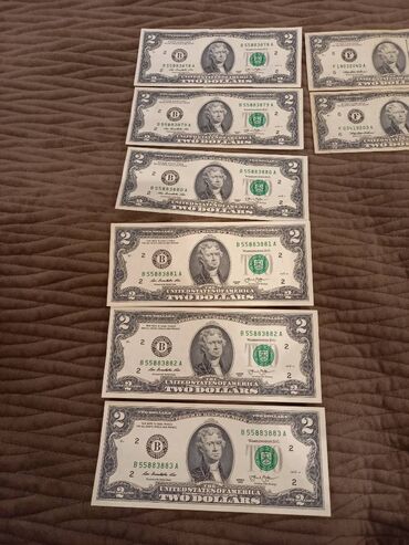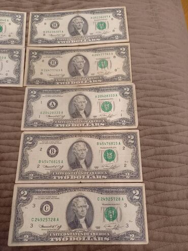 2 dollarlıq əskinazlar satılır 13 ədəd. 5 ədədi 1976 il, 2 ədədi 1995 il, 6 ədədi 2013 B serialı nömrələri də sıralamayla. Əla vəziyyətdə təzə kimi. Ədədi 1500azn.