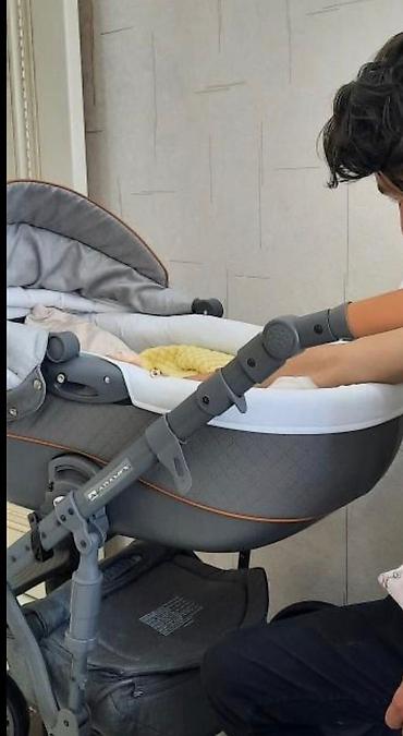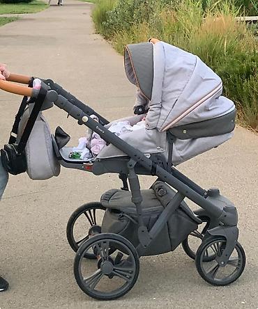 Uşaq arabası – komfortlu beşik bloklu, tünd boz/açıq boz rəng qarışığı