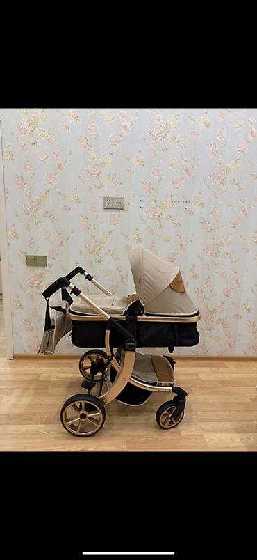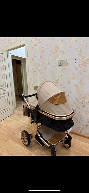Uşaq arabası – çoxfunksiyalı, bej-qızılı dizayn