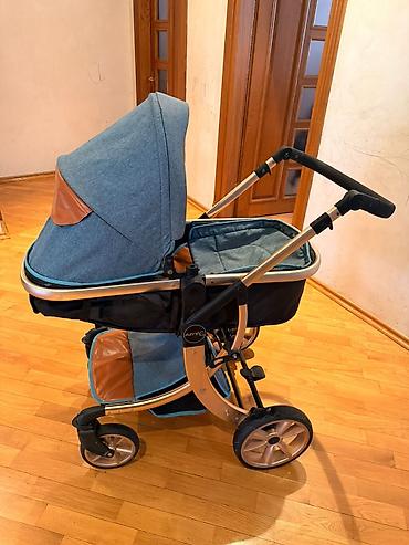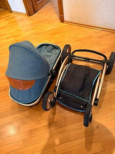 Uşaq arabası dəsti 2 si de birlik de 70 manat - 2 tip: biri körpələr üçün beşik tipli lyulka (mavi rəngdə), digəri oturaq/ gəzinti arabası (qara rəngdə). - Çərçivə: möhkəm alüminium konstruksiya, t...