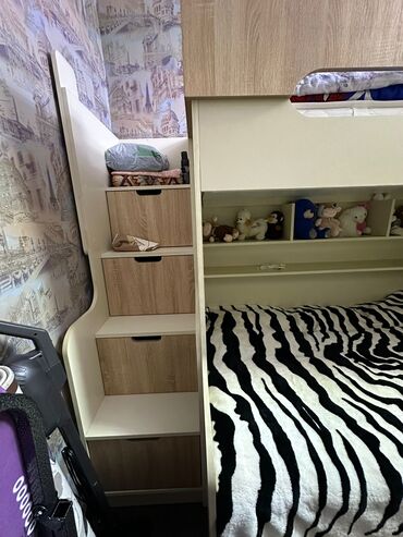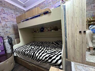 Salam. Keyfiyyətli materiallardan yığılmış 2mertebe çarpayı satılır. Pilləkənləri siyirməlidir.lap altdakı siyirməyə matras qoyub 3yataqda etmək mümkündür.her iki matrasida üstündədir. 1ci mərtəbə 1.80x1.20m/ 2ci mərtəbə 1.80x0.9m. pilləkənlə birlikdə ümumi uzunlugu 2.35x1.20m.Başqa hansı sual sizi maraqlandirsa Nömrənin WP aktivdir yaza bilərsiniz. ünvan Kürdəxanı. 400AZN son qiymətdir.