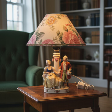 Masaüstü abajur – keramika gövdəli, parça şapkali - Dizayn: Silindrik