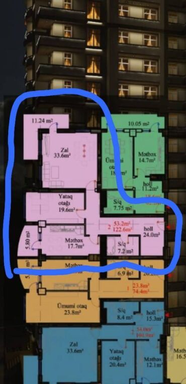 Nizami rayonu, Xalqlar Dostluğu metrosu yaxınlığı, Nazlı Şadlıq Sarayının yanı, 19 mərtəbəli yeni tikili binanın 12-cı mərtəbəsində yerləşən, ümumi sahəsi 122 kv-m olan, 2 otaqlı, podmayak mənzil satılır. Sənədi müqavilədir. Qaz, su, işıq daimidir.