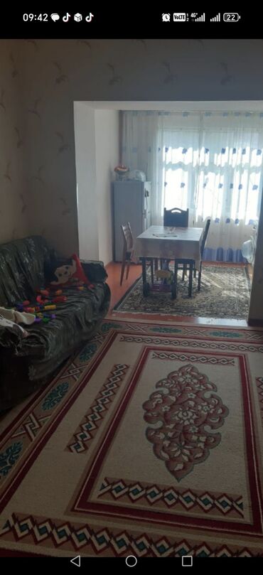 - Qonaq otağı: divan, xalça, uşaq oyuncaqları üçün yer; böyük pəncərə ilə işıqlı.