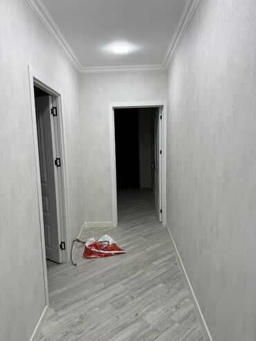 Geniş və işıqlı mənzil interyeri - Uzun, geniş dəhliz: LED tavan işıqları, dekorativ naxışlı divar kağızları, laminat döşəmə. Elektrik sayğacı və paylayıcı qutu dəhlizdə yerləşir. - Otaq: Böyük pə...