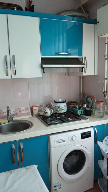 - Mətbəx: quraşdırılmış aspirator, qaz xətti, divar şkafları, paltaryuyan üçün yer və qoşulma, pəncərəli işıqlı sahə.