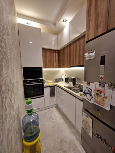 2 otaq, qarderob, 2 mətbəx, isti döşəmə və kombi sistemi.