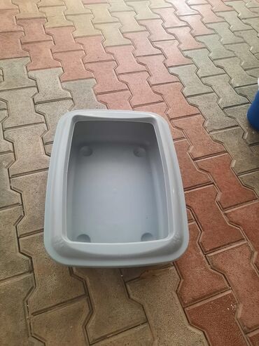 Məhsul: Pişik tualeti (qum qabı) Ölçü: Uzunluq 35, Eni 30, hündürlüyü 10 (sm) Çox az işlədilib. - Material: bərk plastik - Rəng: açıq mavi gövdə, şəffaf üst hissə - Konstruksiya: iki hissədən i...