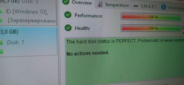 - S.M.A.R.T. göstəriciləri: Health 100%, Performance 100% (ekran görüntülərində)