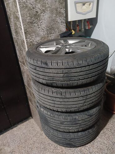 Hyundai orijinal yüngül lehimli disklər + Nexen CP672 təkərlər komplekti. Xüsusiyyətlər: - Disk: Hyundai loqolu, 5 cüt bolt deşikli (5x114.3 ehtimalı), 5 şüalı dizayn, gümüş rəng. - Çəkiclərə uyğu...