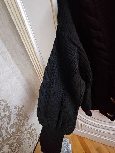 Qara rəngli uzun qadın palto-kardiqan - Model: uzun, düz kəsim, ön hissəsi açıq (düyməsiz/fermuarsız) - Yaxa: klassik yaxalıq (blazer tipli) - Qol: uzun qol - Uzunluq: baldırdan aşağı – maxi - Mat...