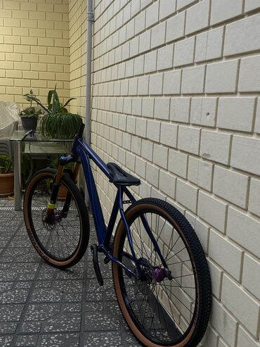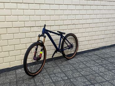 - Çərçivə: sərt (hardtail), alüminium/poza uyğun geometriya, tünd mavi rəng