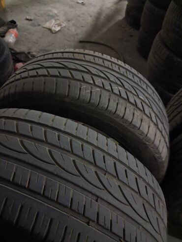 Məhsul: Avtomobil təkərləri (cütlük) - Növ: Yol/şosse üçün bütün mövsüm naxışlı şinlər - Ölçü üzərində işarə görünmür; vizual olaraq eyni ölçülü iki ədəd - Protektor: simmetrik, çoxsaylı eninə və ...