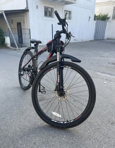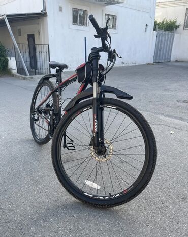 (TTSZ 525 .26Lıq)Fıster dağ velosipedi - Çərçivə: yüngül alaşımlı, qara-qırmızı-ağ dizayn - Amortizator: ön amortizatorlu çəngəl - Təkərlər: 700C/28–29” tipli dar profilli dişli şinlər (şəhər və y...