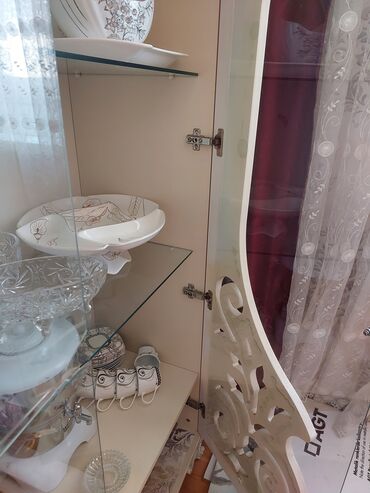 Klassik üslubda qonaq otağı mebel dəsti Tərkibi: - Vitrin şkafı (böyük): ön hissəsi şüşəli, içəridə 3 səviyyəli şüşə rəflər, aşağı hissədə dekorativ naxışlı panel; üstündə dekor üçün geniş səth. -...